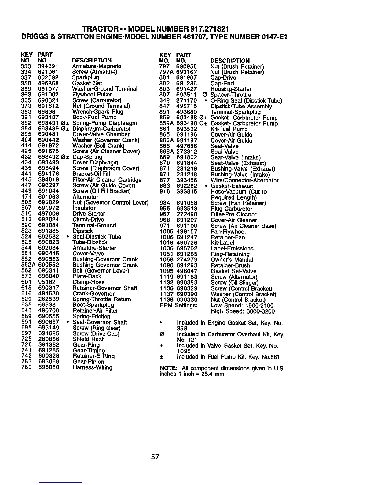 BRIGGS & STRA'r'I'ON ENGINE-MODEL NUMBER 461707, TYPE NUMBER 0147-E1
