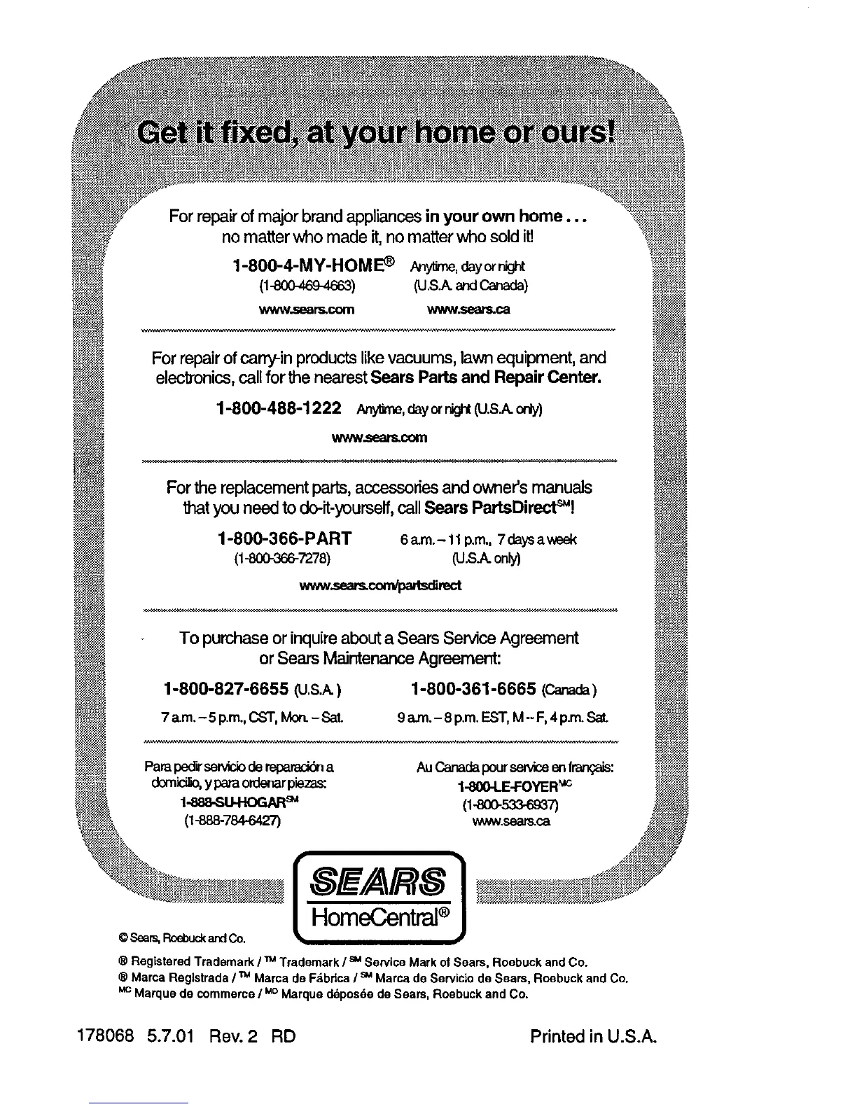 178068 5.7.01 Rev. 2 RD Printed in U.S.A.