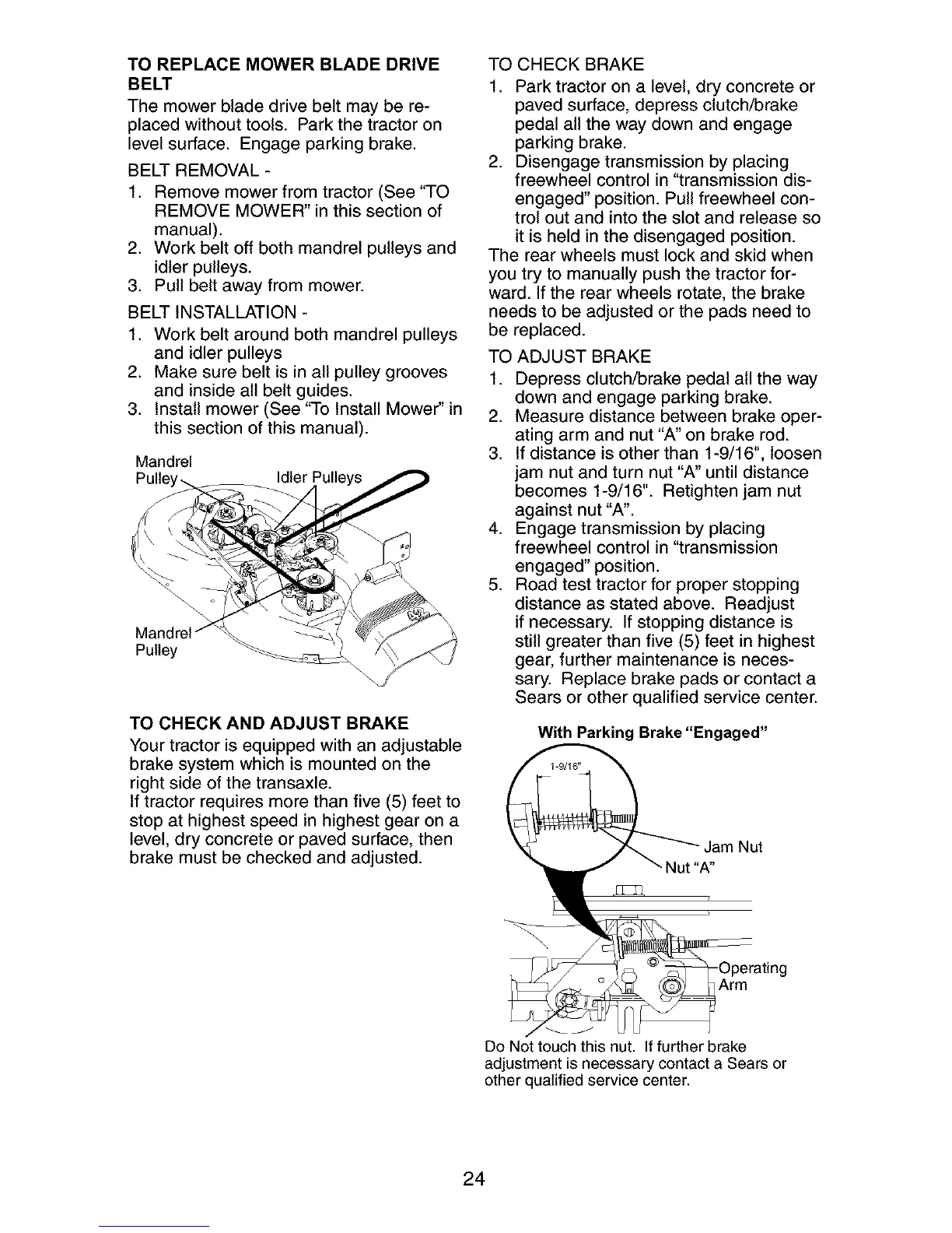ating arm and nut "A" on brake rod.