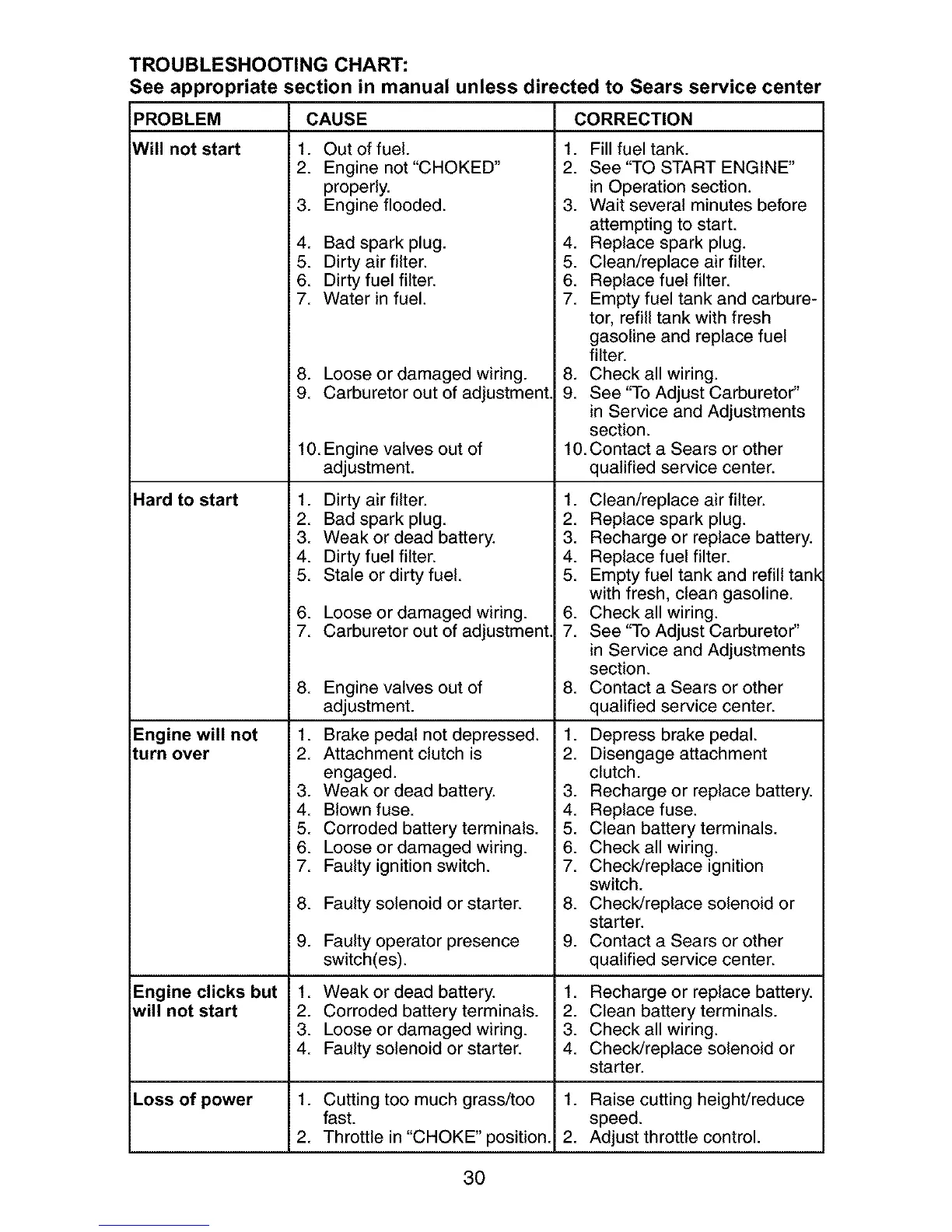 2. Throttle in "CHOKE" position. 2. Adjust throttle control.