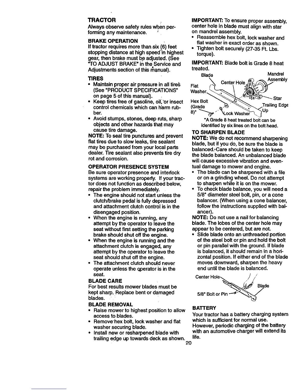 IMPORTANT: Blade bolt is Grade 8 heat