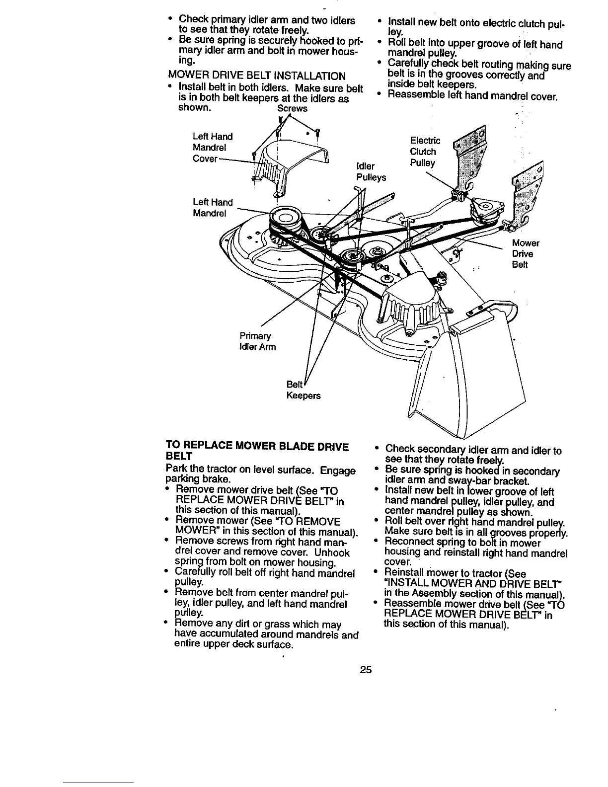 REPLACE MOWER DRIVE BELl-" in