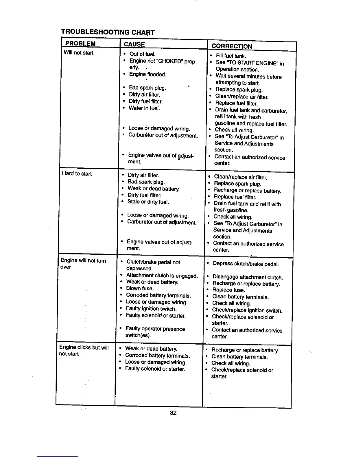 • Carburetor out of adjustment. , •