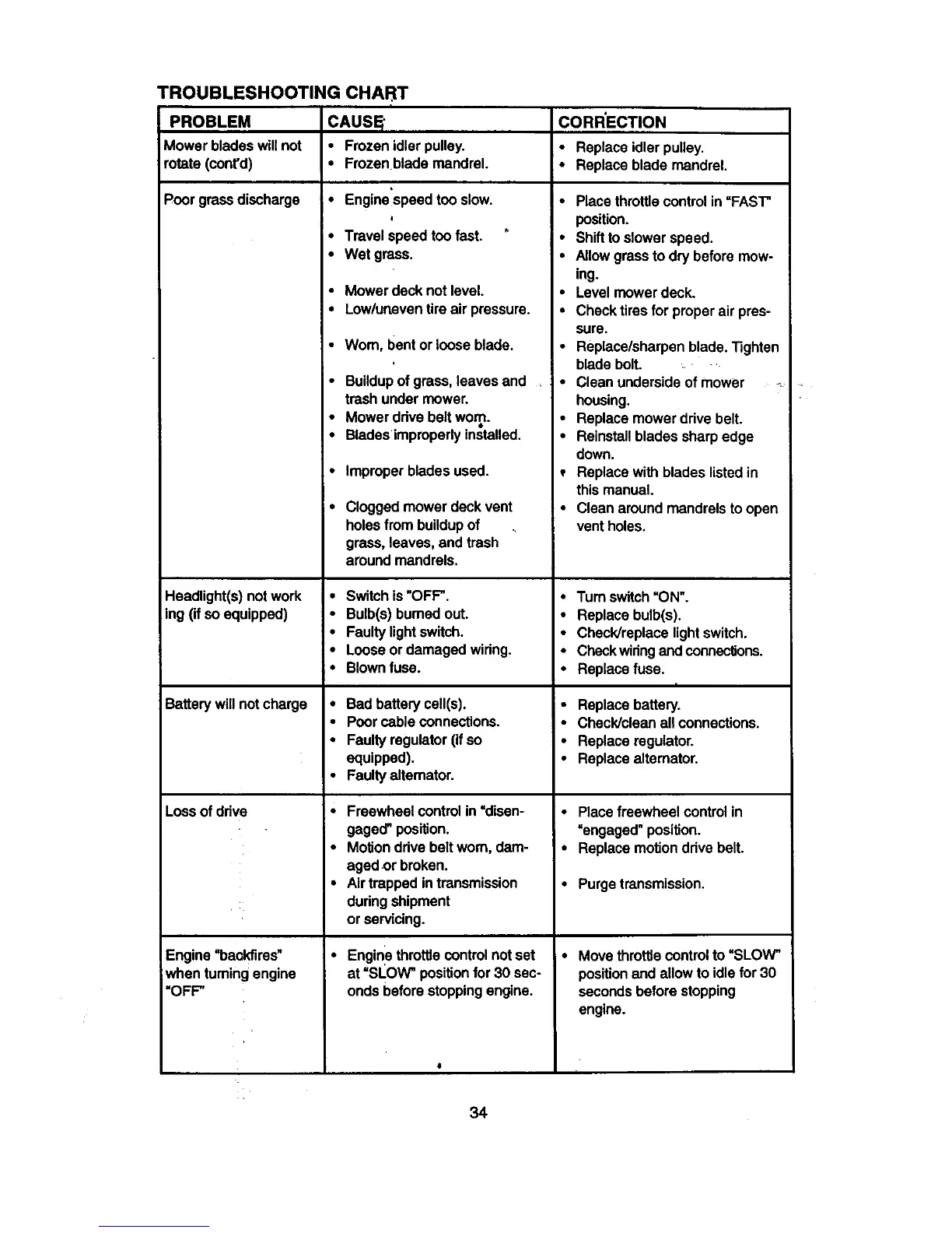 TROUBLESHOOTING CHART
