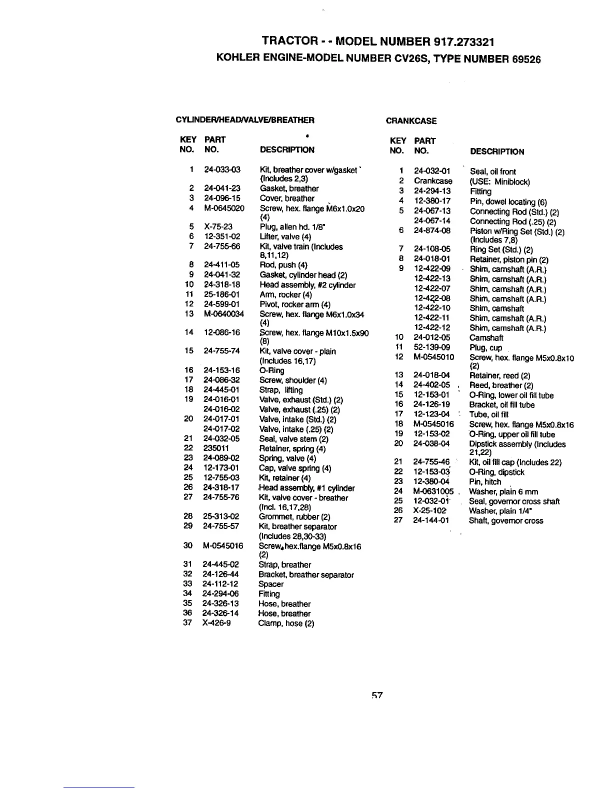 27 24-755-76 Kit,valvecover- breather 25 12-032-01