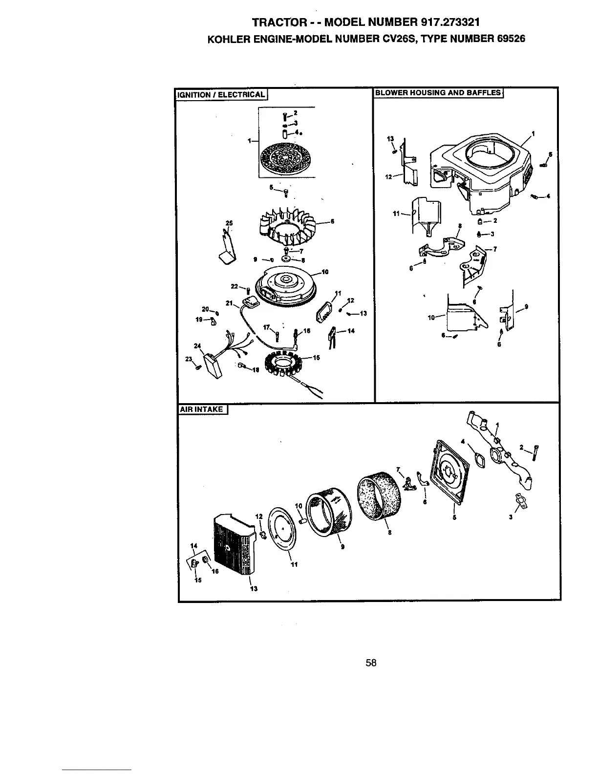 Craftsman 917.273321 - Engine Ignition;Electrical Components; Air Intake System Components