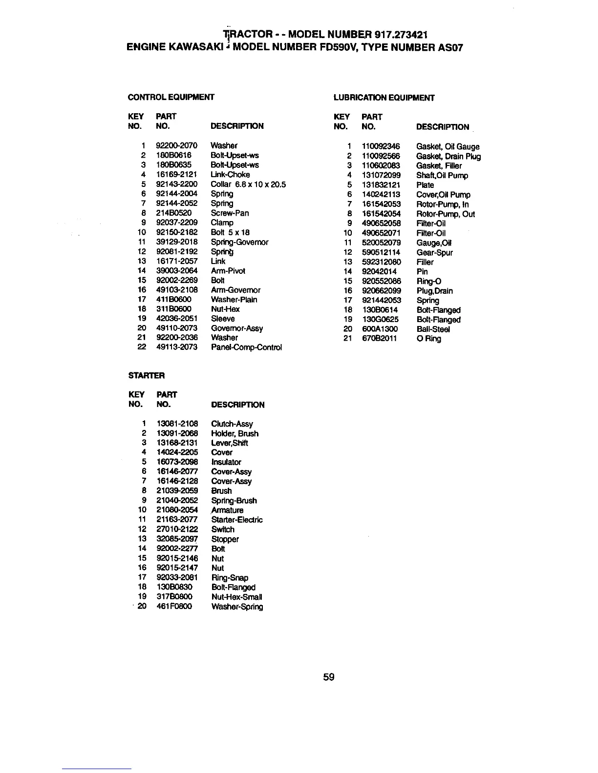ENGINE KAWASAKI ; MODEL NUMBER FD590V, TYPE NUMBER AS07