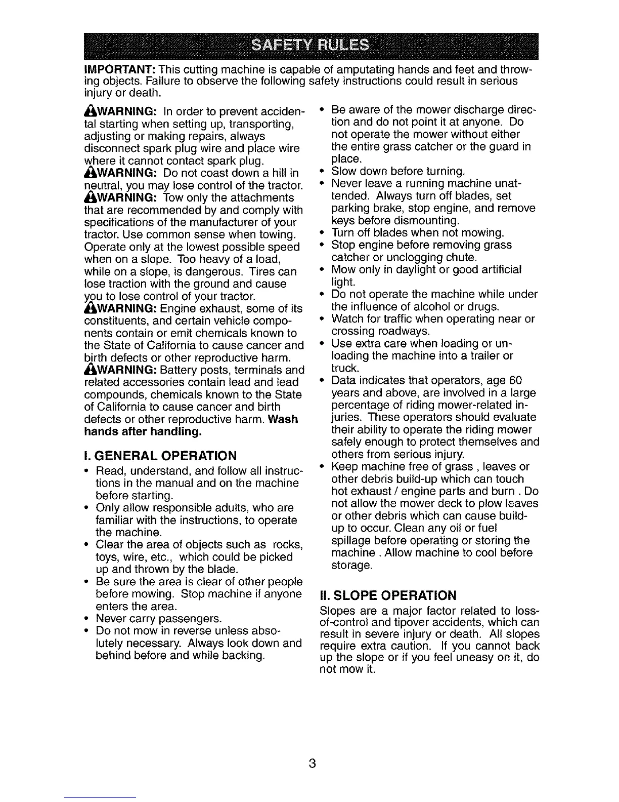 I, GENERAL OPERATION