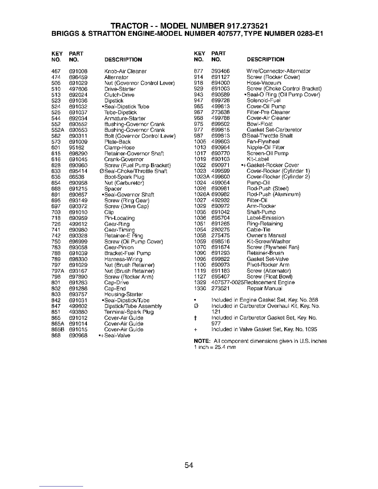 544 892034 Armature-Starter 968 499788 Cover-Air Cleaner