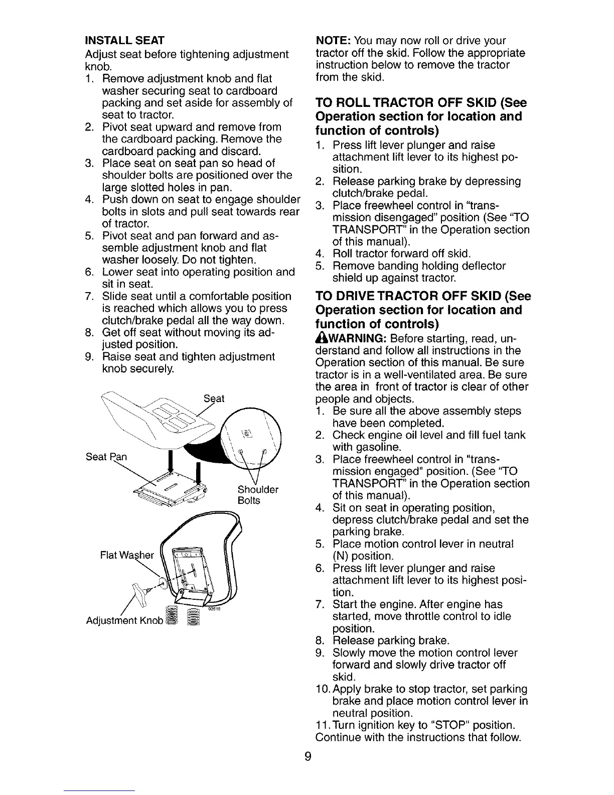 tractor off the skid. Follow the appropriate