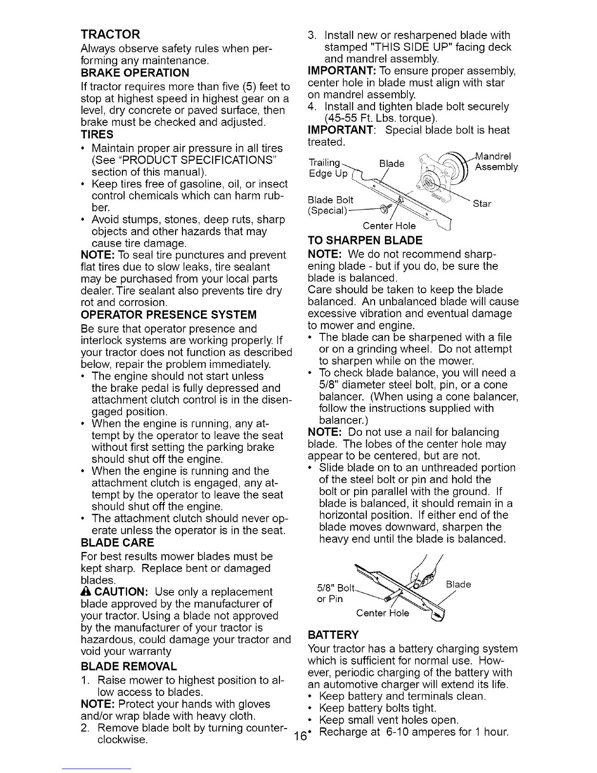 IMPORTANT: Special blade bolt is heat