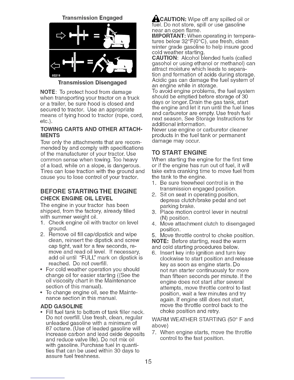BEFORE STARTING THE ENGINE