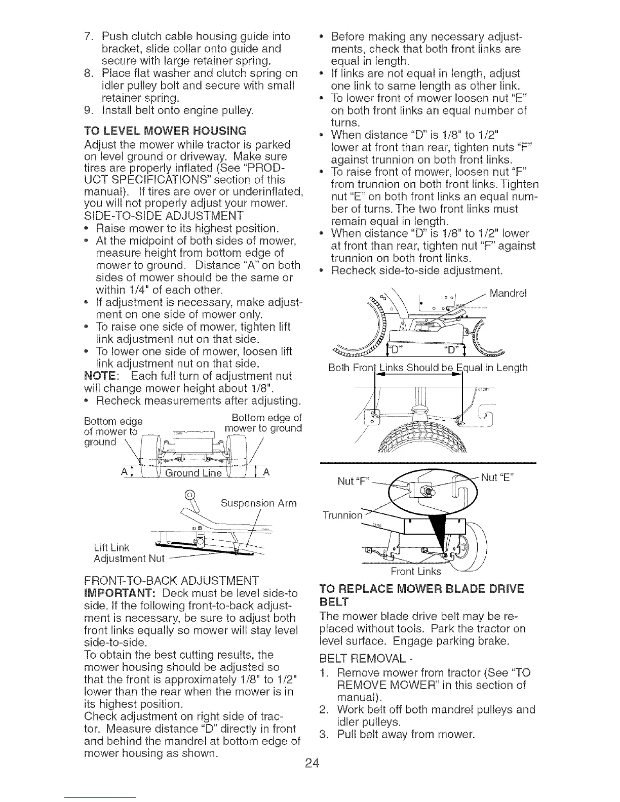 To raise front of mower, loosen nut "F"
