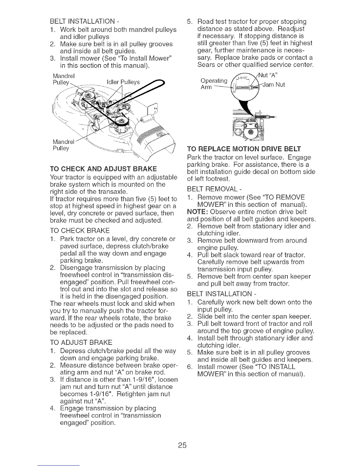 ating arm and nut "A" on brake rod.