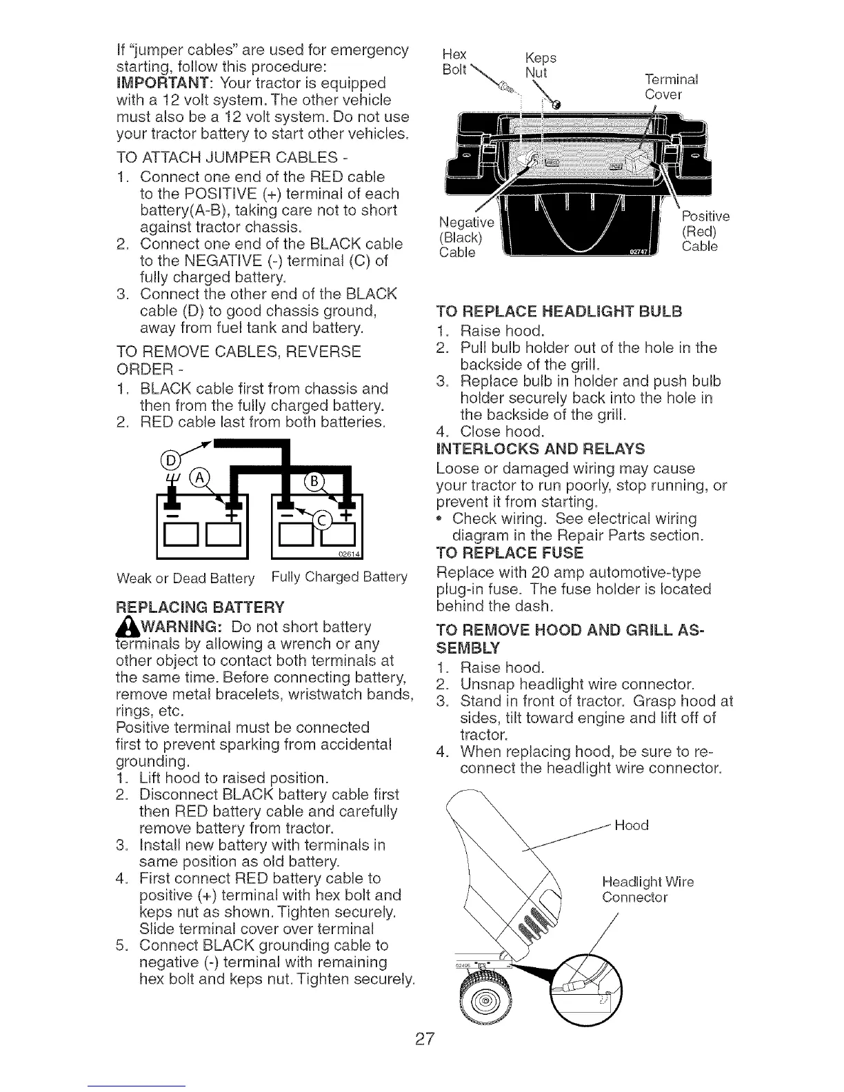 your tractor battery to start other vehicles.
