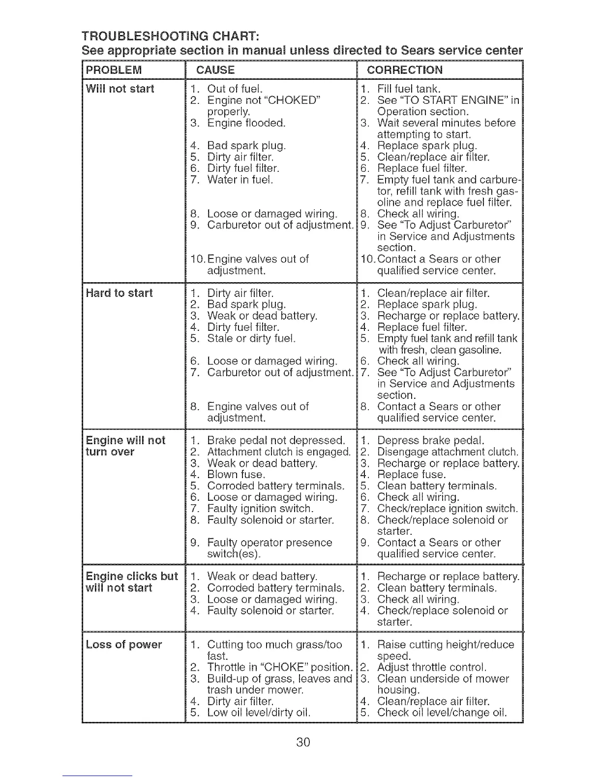 8. Faulty solenoid or starter.