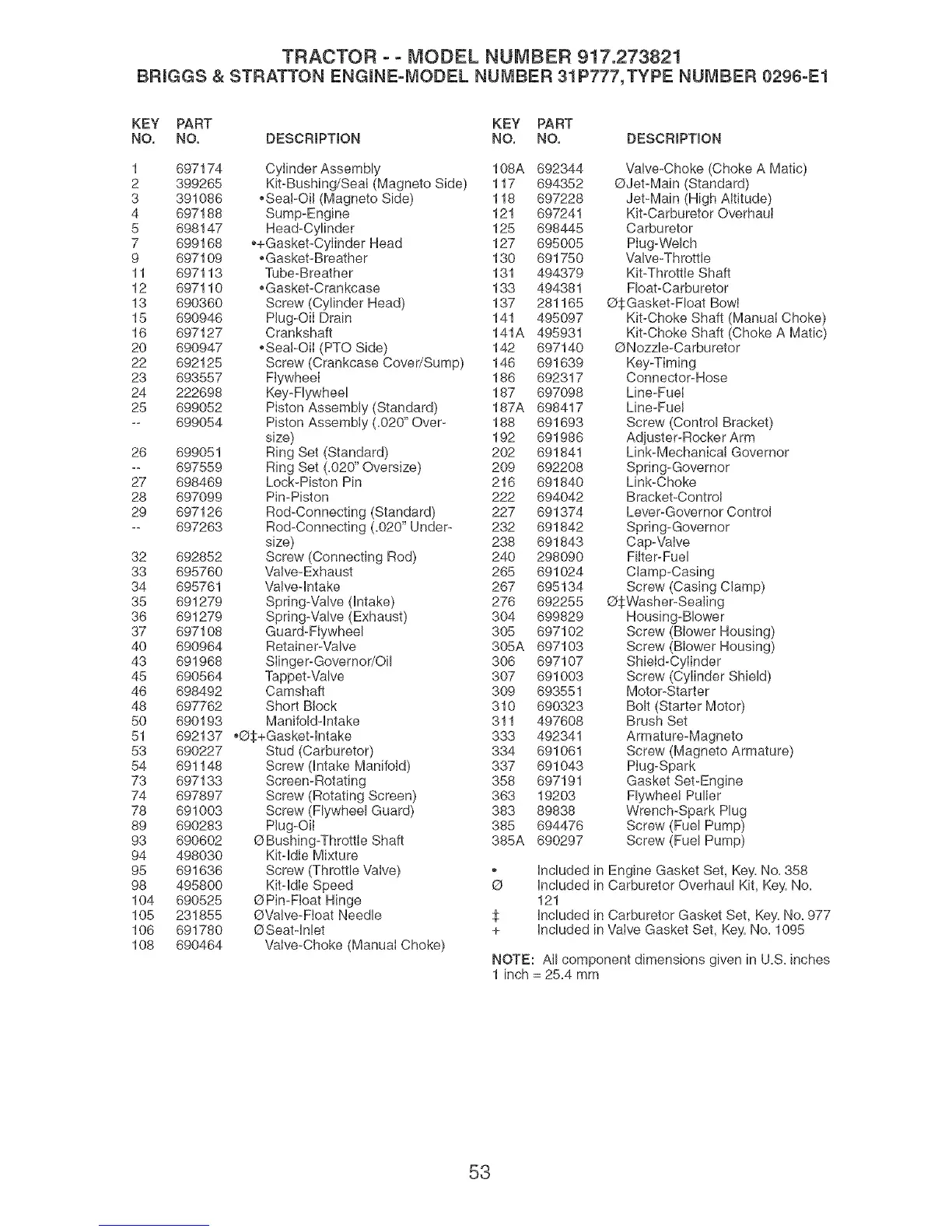BRmGGS & STRATTON ENGmNE=MODEL NUMBER 31P777,TYPE NUMBER 0296=E1