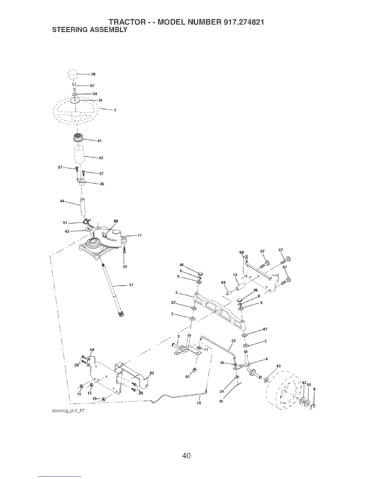 Craftsman 917.274821 - Steering Assembly; Steering Assembly Component Diagram