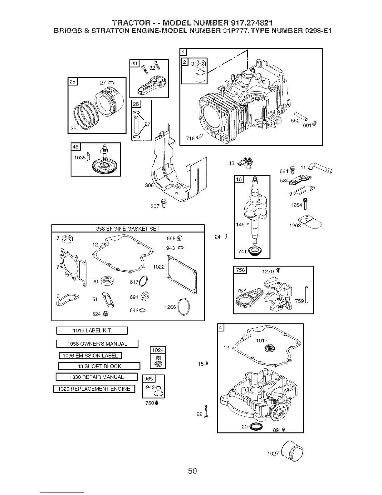 Craftsman 917.274821 - Briggs & Stratton Engine; Briggs & Stratton Engine Component Diagram