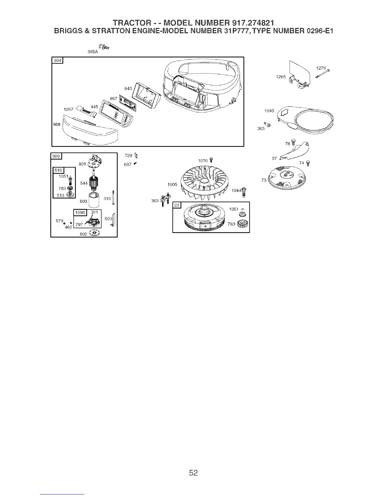 Craftsman 917.274821 - Flywheel, Starter, and Other Engine Parts