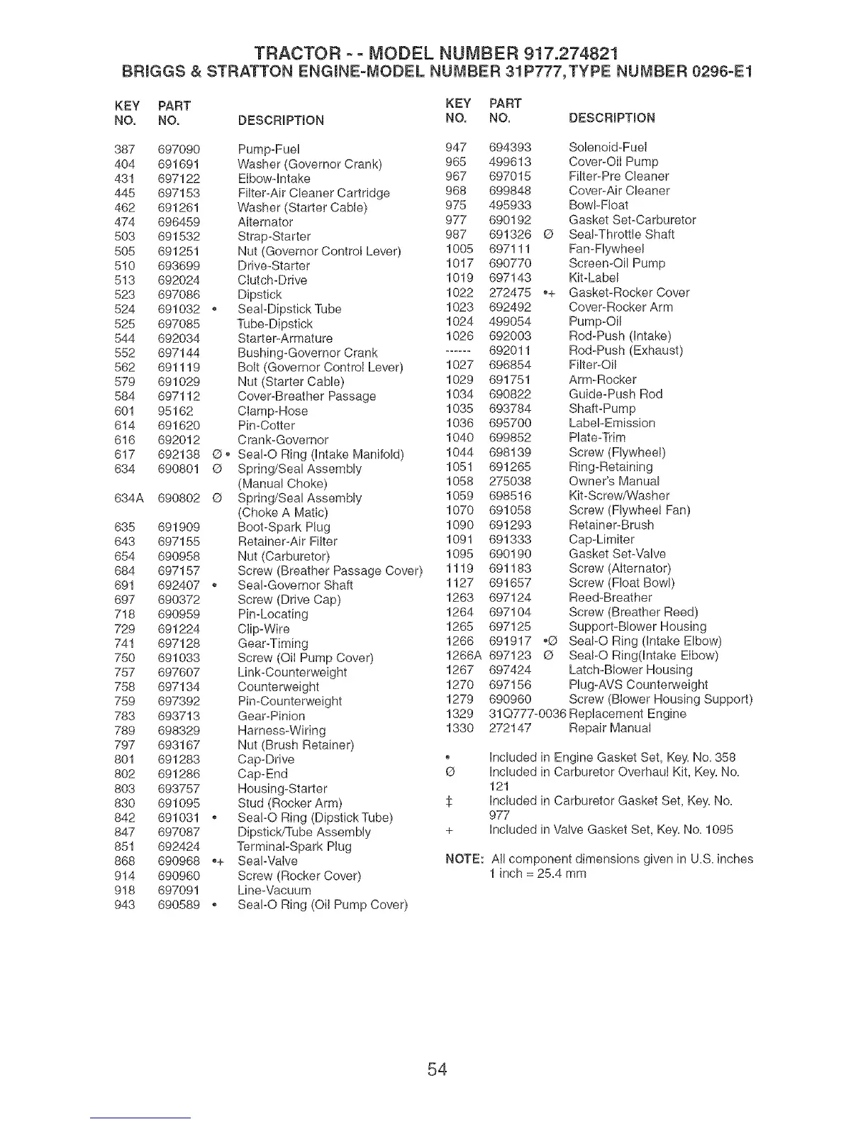 BRmGGS & STRATTON ENGmNE=MODEL NUMBER 31P777, TYPE NUMBER 0296=E1