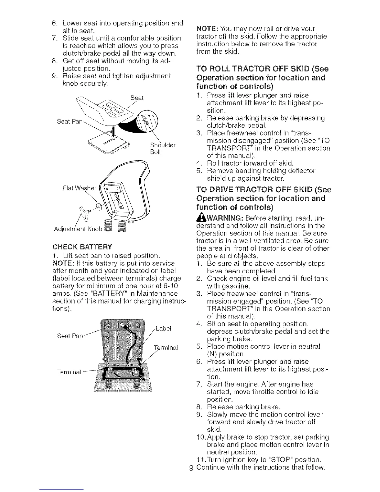 tractor off the skid. Follow the appropriate