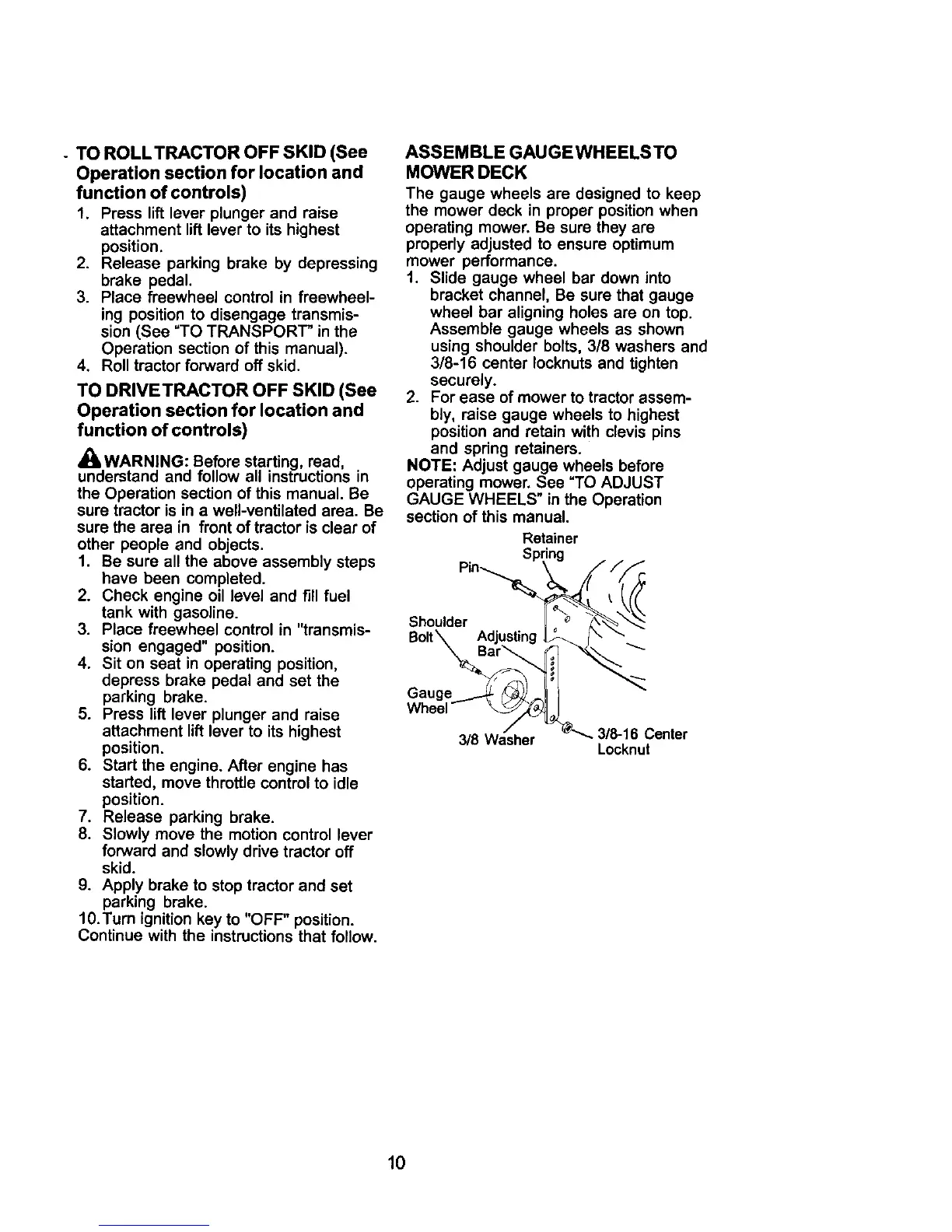 operating mower. See "TO ADJUST
