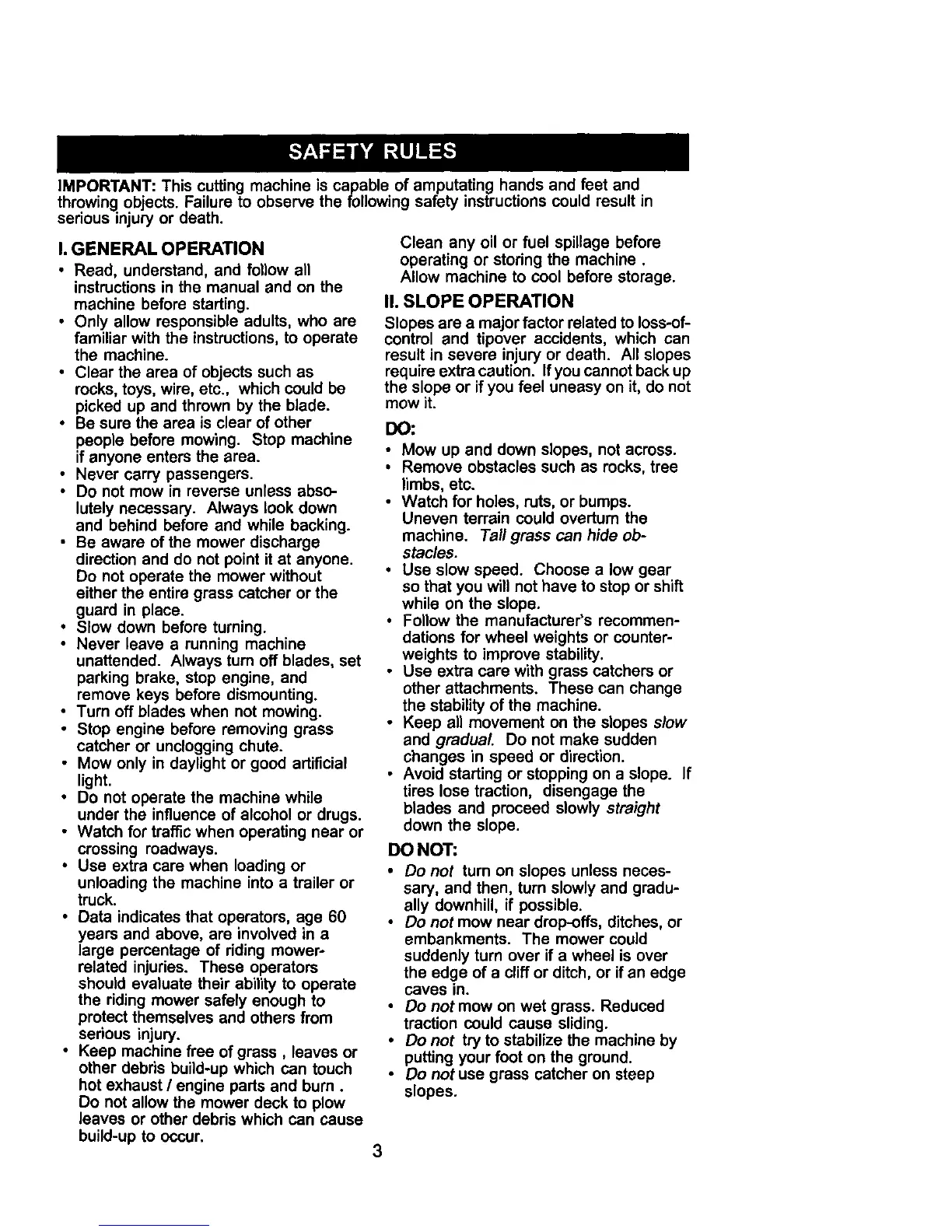 • Mow only in daylight or good artificial
