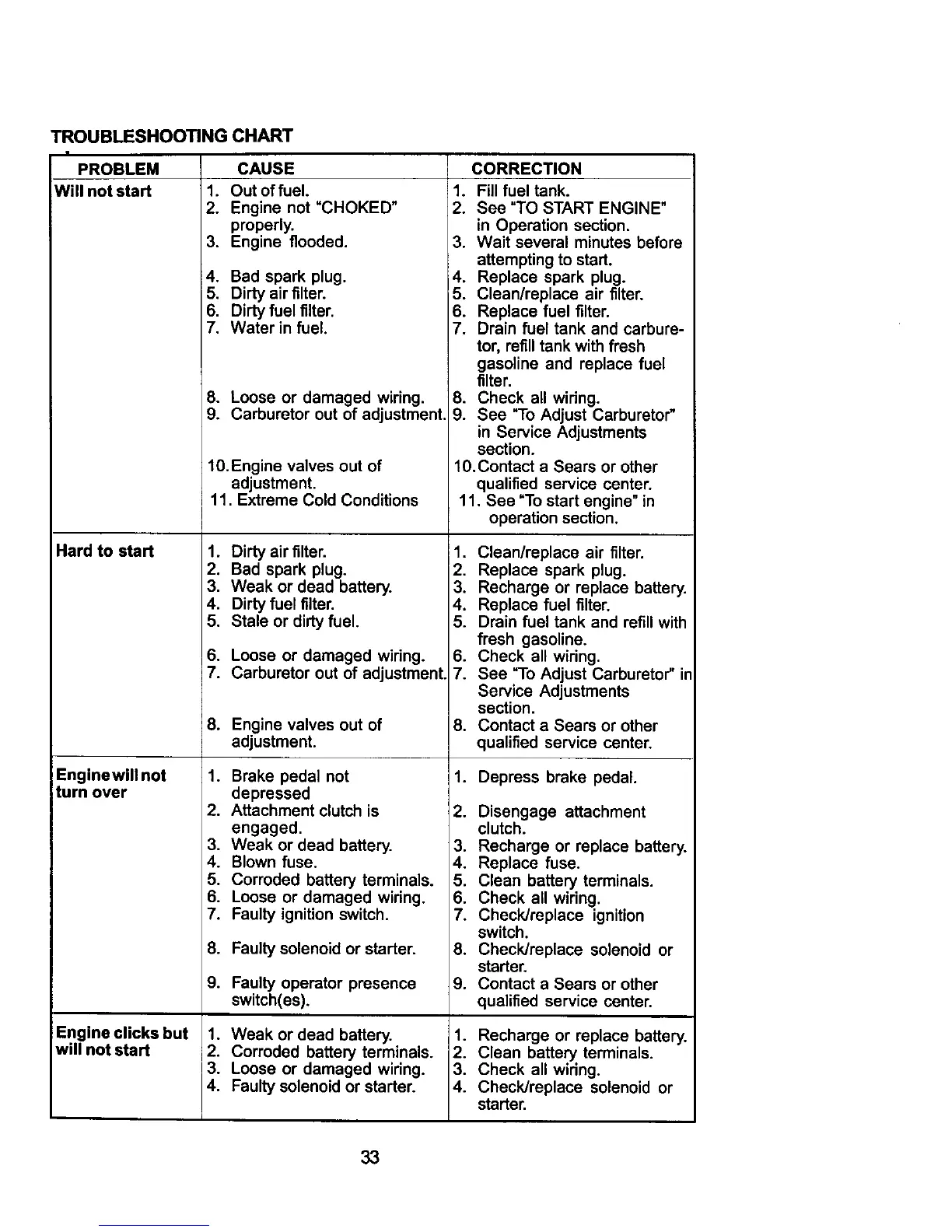 Carburetor out of adjustment, 7.