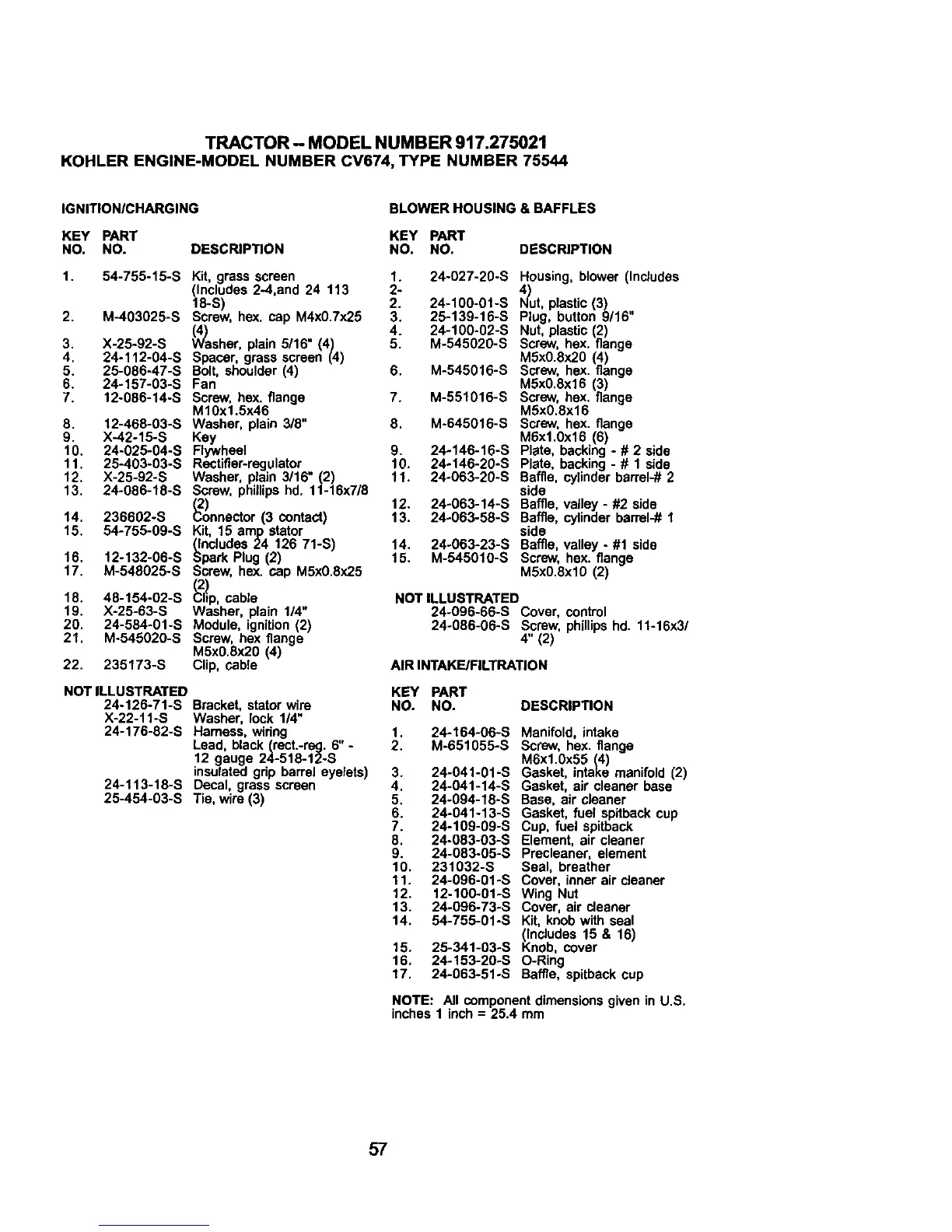 1. 54-755-15-S Kit, grass screen 1. 24°027-20-S Housing, blower (Includes