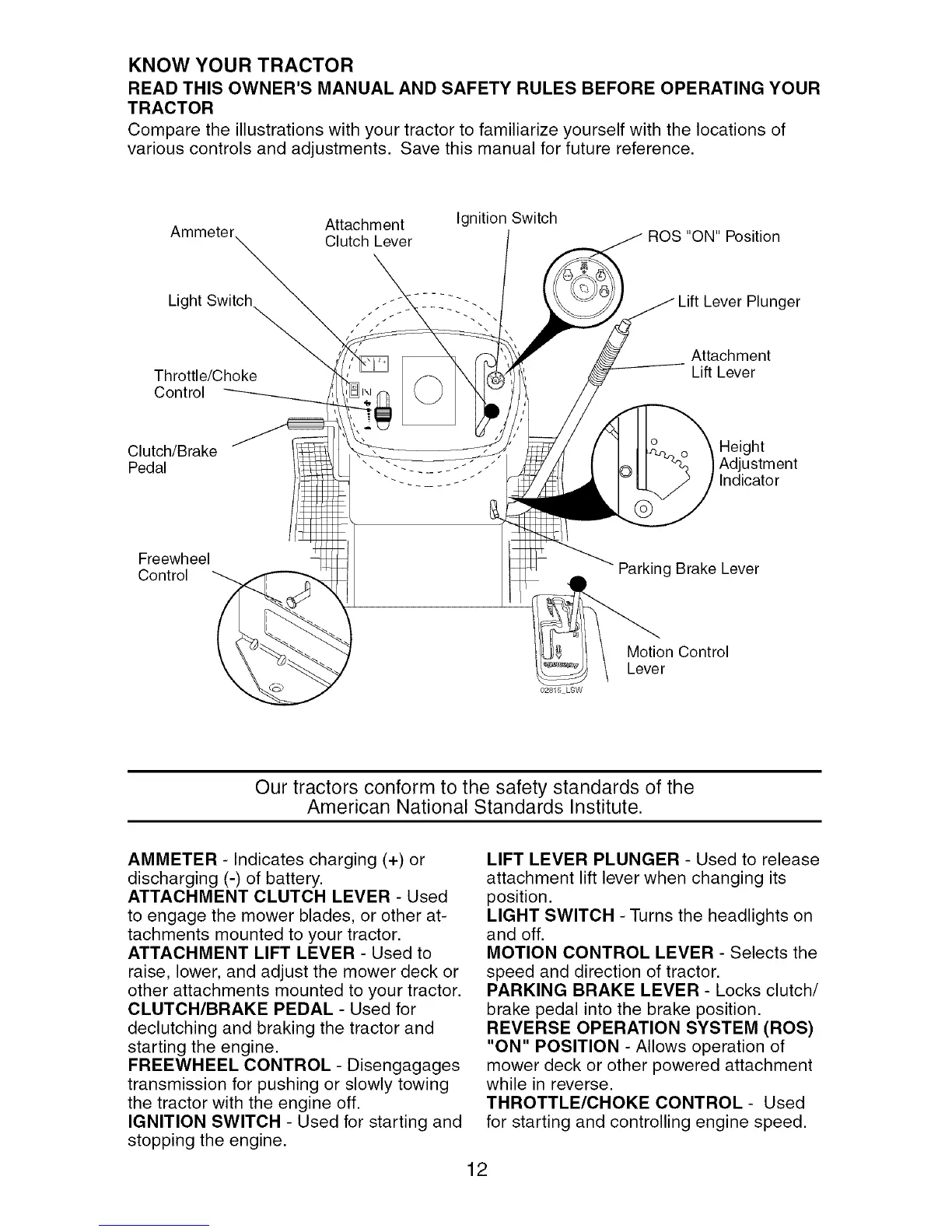 Compare the illustrations with your tractor to familiarize yourself with the locations of