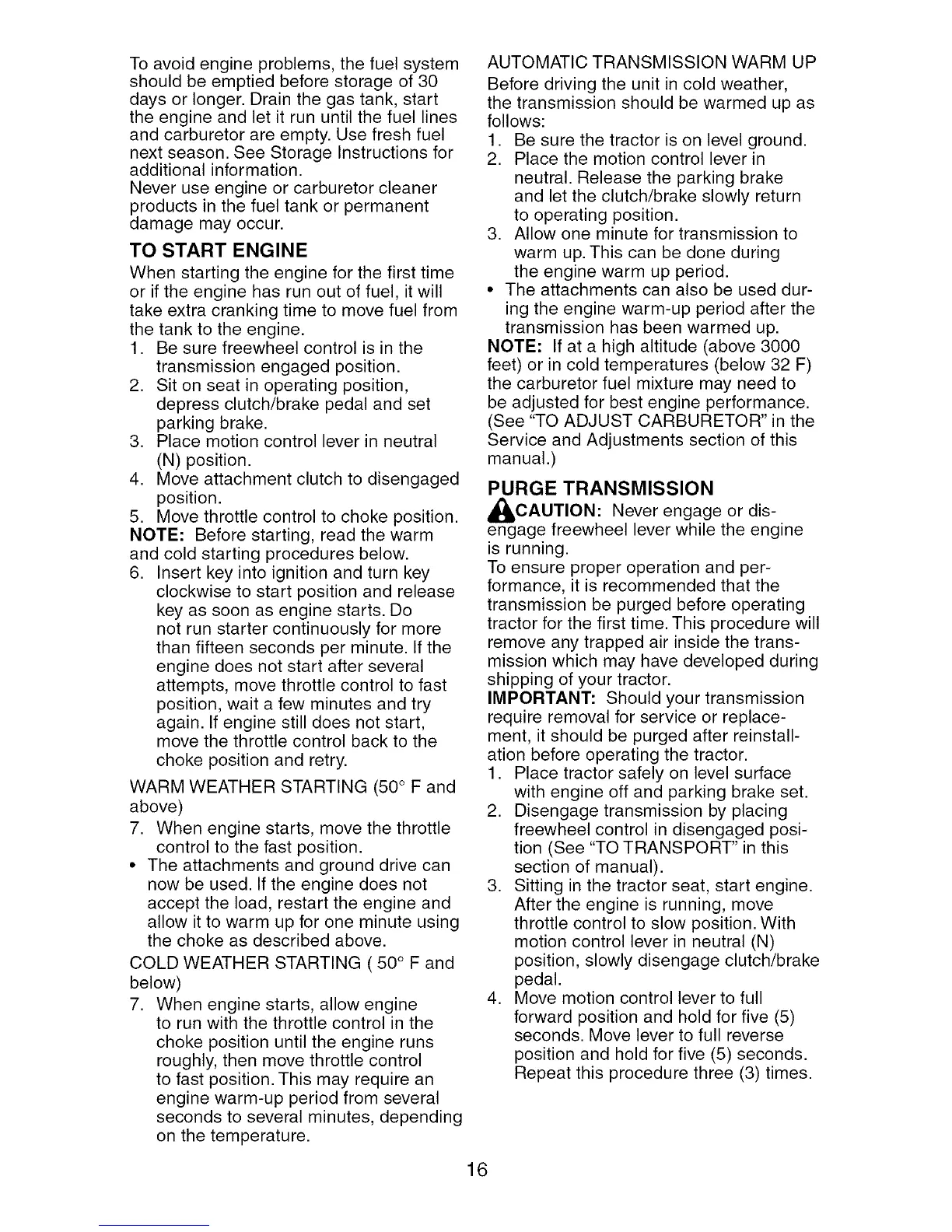 COLD WEATHER STARTING ( 50 ° F and