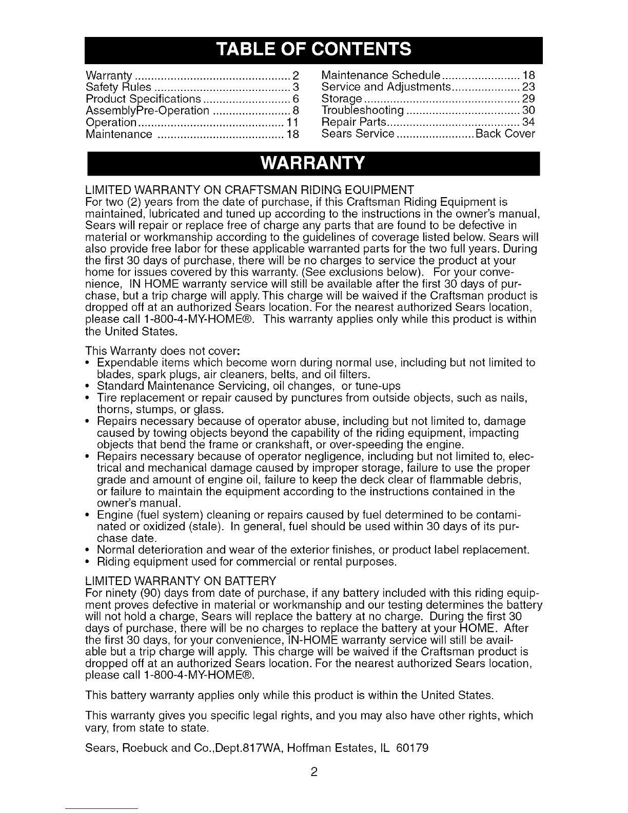 Fortwo (2)yearsfrom the date of purchase,if this CraftsmanRiding Equipmentis