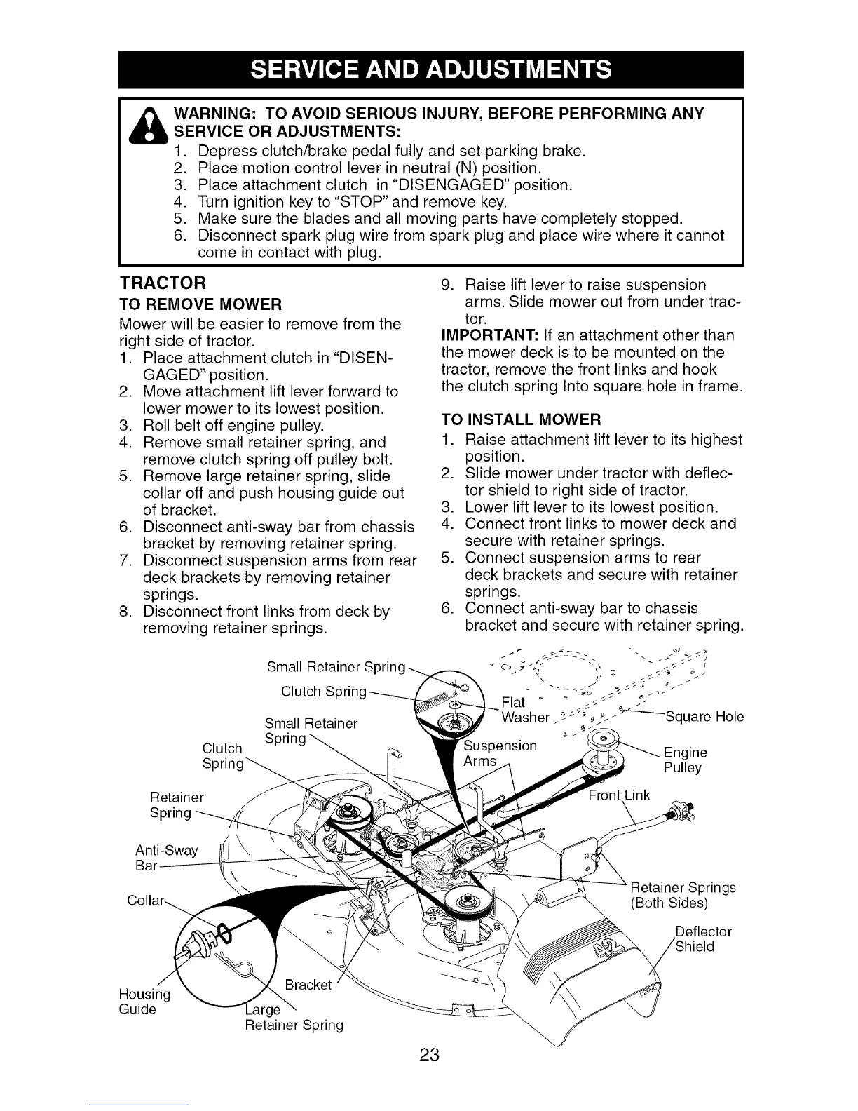 WARNING: TO AVOID SERIOUS INJURY, BEFORE PERFORMING ANYSERVICE OR ADJUSTMENTS:
