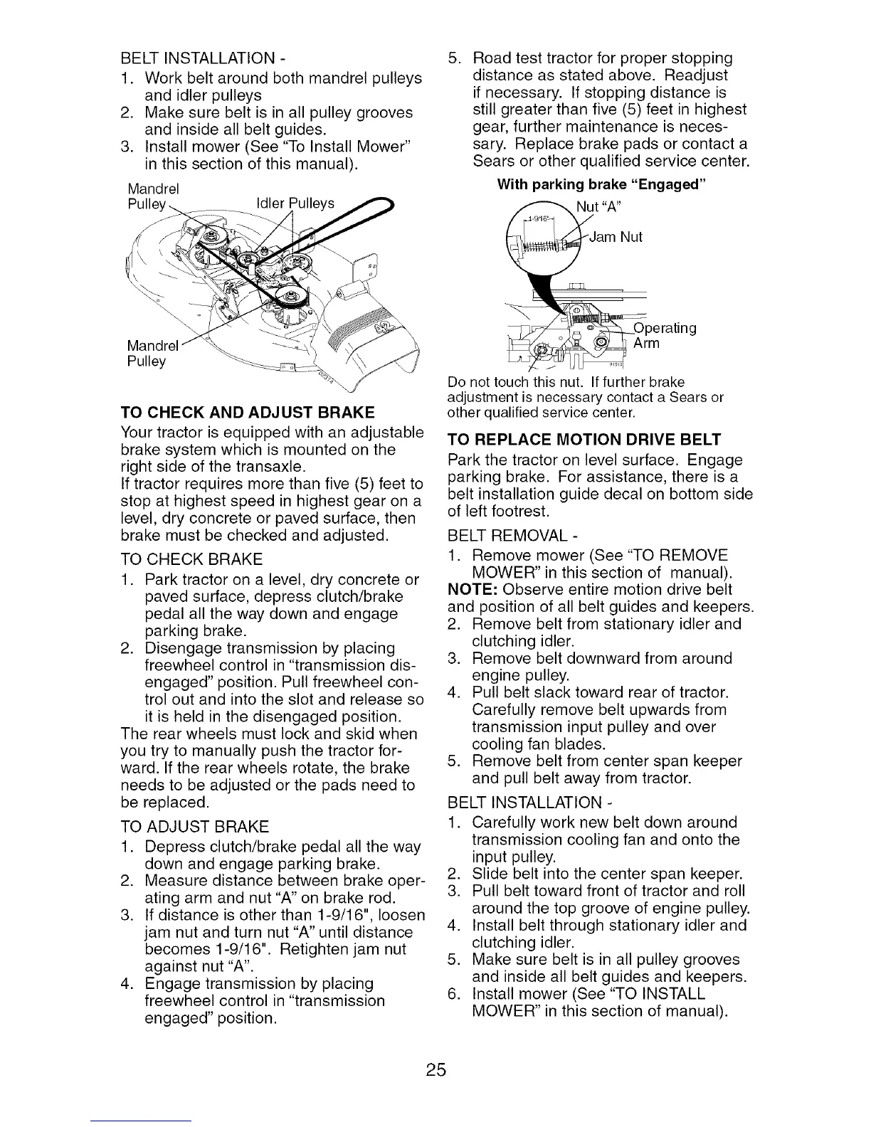 ating arm and nut "A" on brake rod.