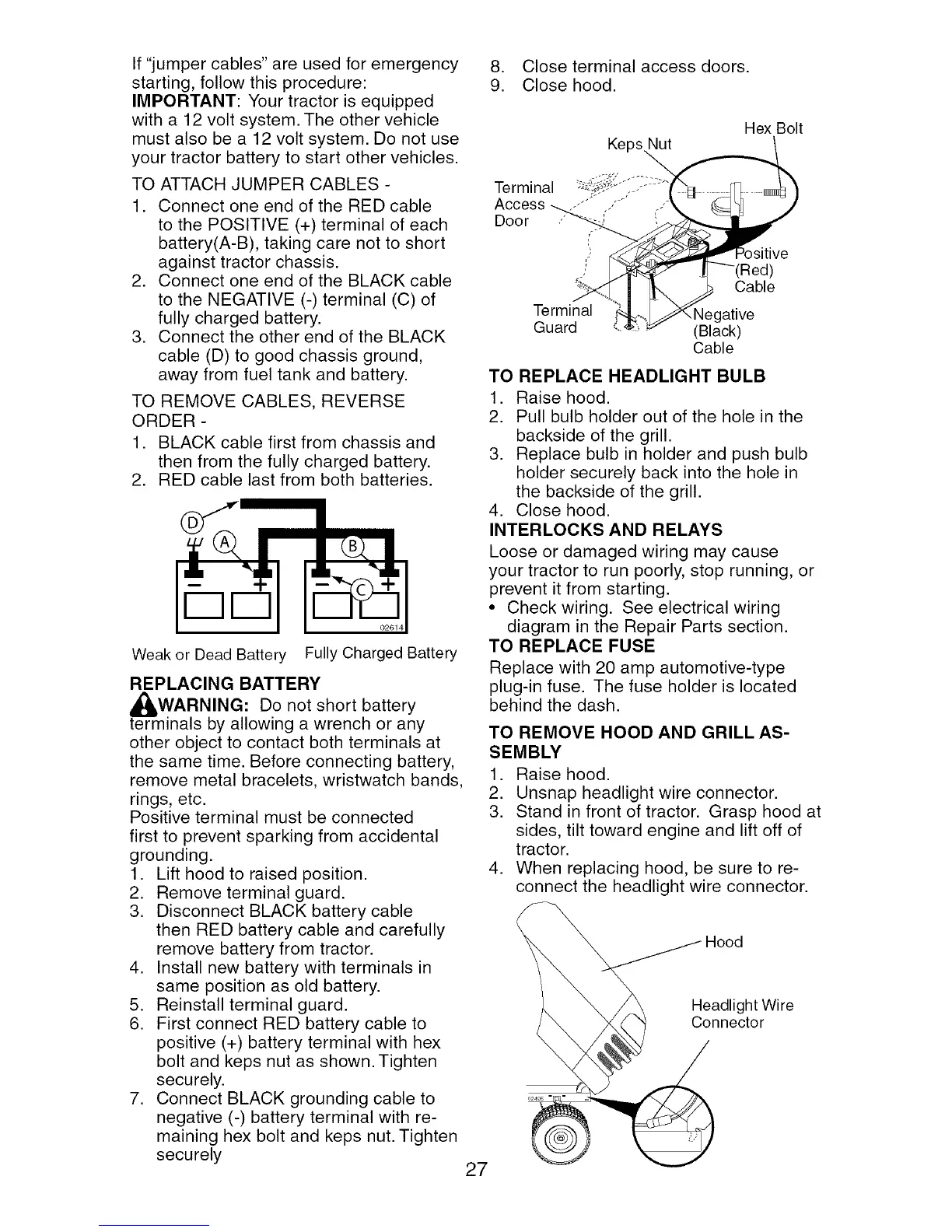 your tractor battery to start other vehicles.
