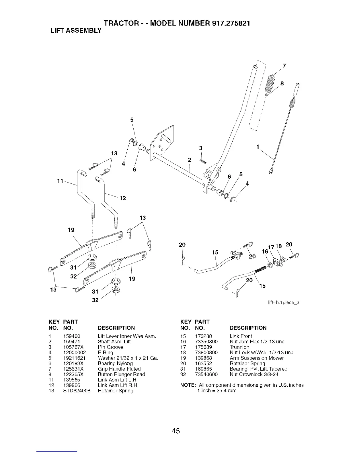 1 159460 Lift Lever Inner Wire Asm 15 173288