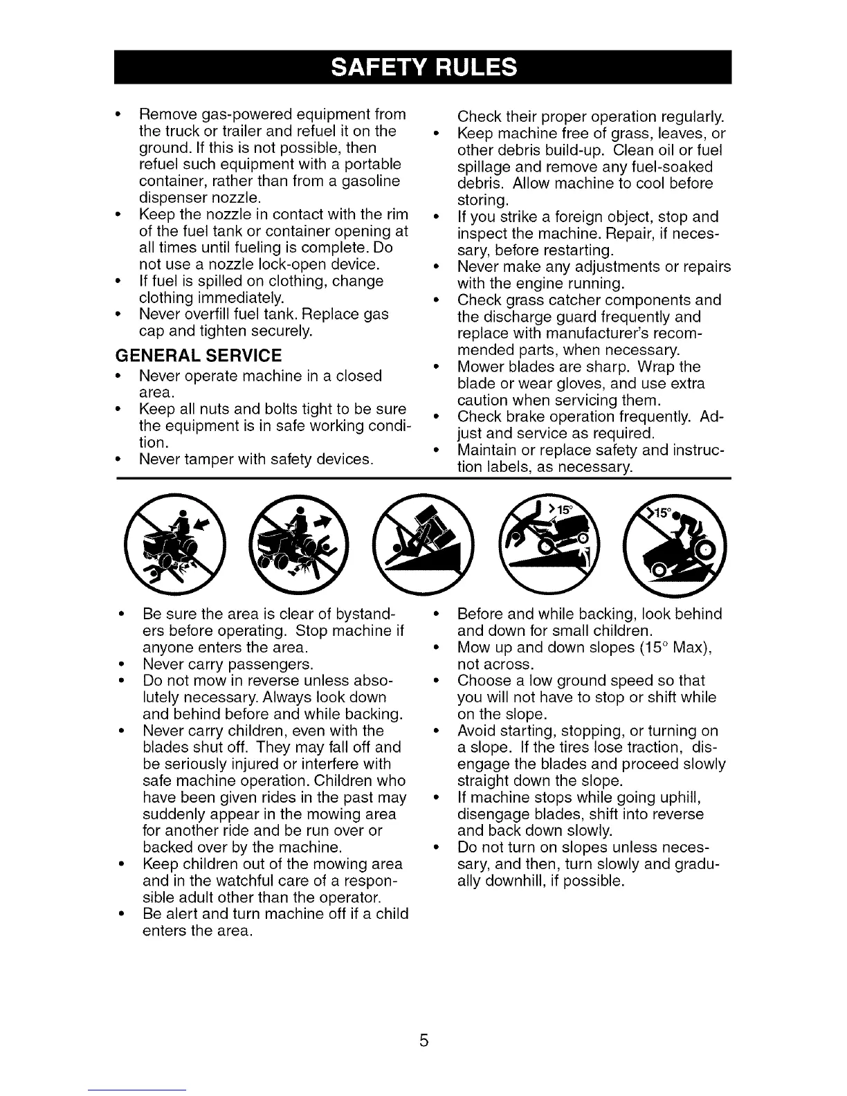 • Mow up and down slopes (15 ° Max),