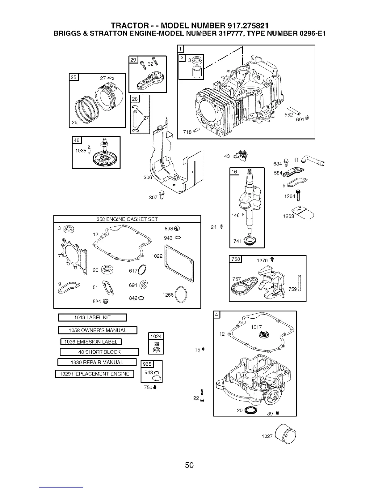 Craftsman 917.275821 - Briggs & Stratton Engine Diagrams and Parts List