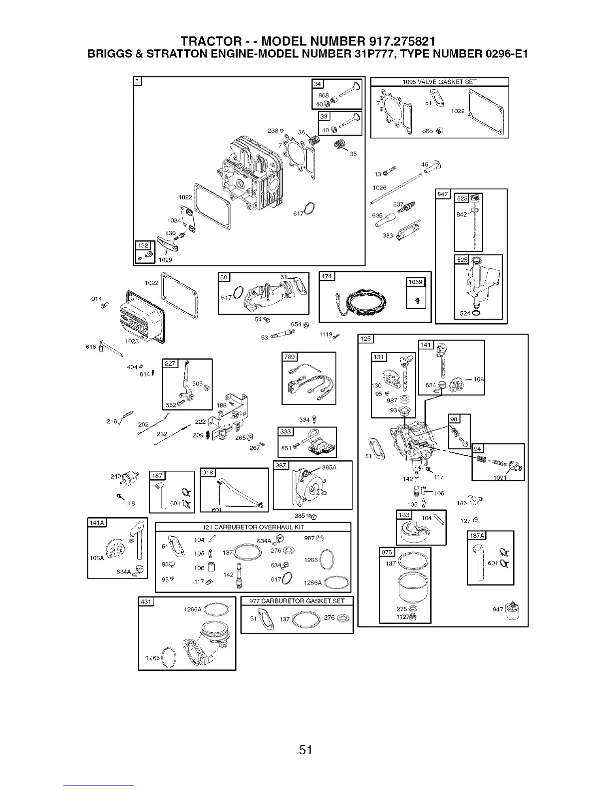 BRIGGS & STRATTON ENGINE-MODEL NUMBER 31P777, TYPE NUMBER 0296-E1