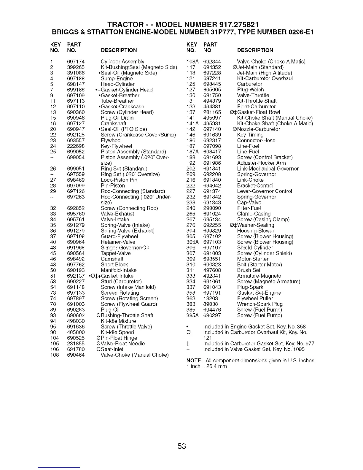 BRIGGS & STRATTON ENGINE-MODEL NUMBER 31P777, TYPE NUMBER 0296-E1