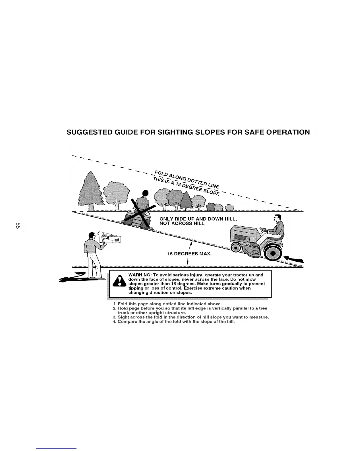 slopes greater than 15 degrees. Make turns gradually to prevent