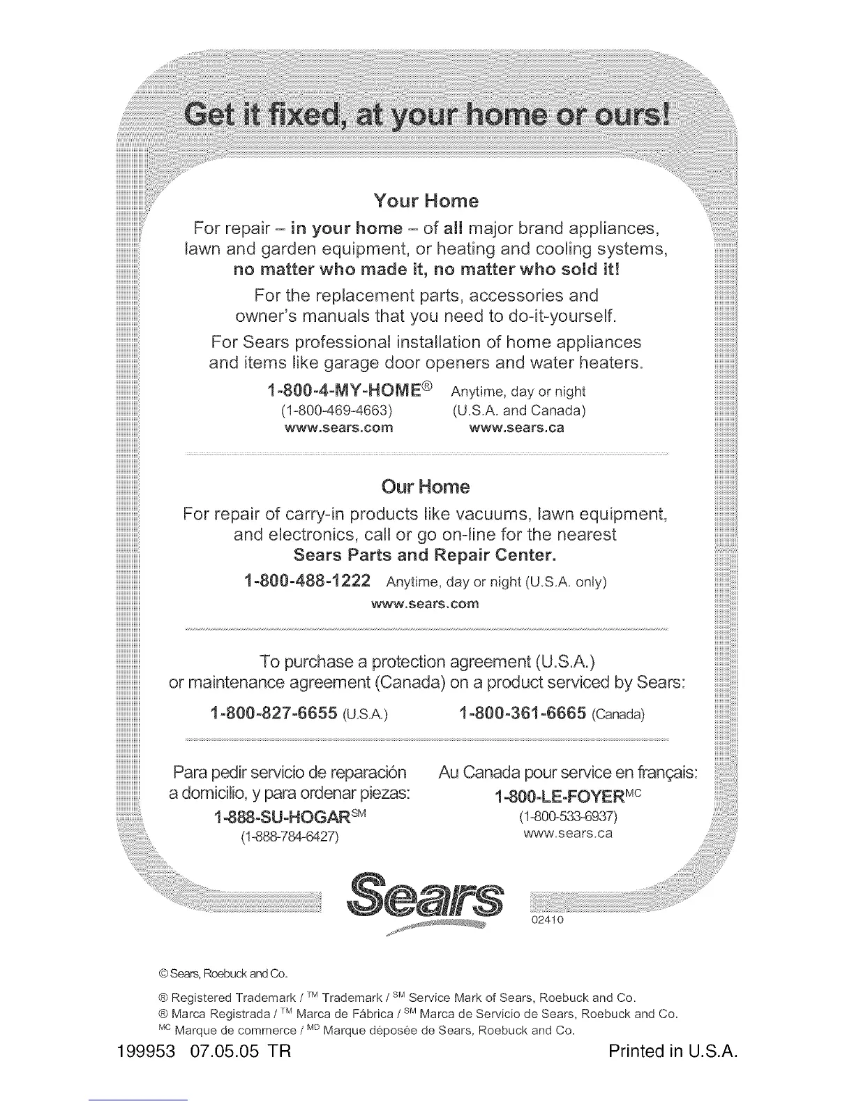 ® Marca Registrada / TMMarca de Fabrica / SMMarca de Servic[o de Sears, Roebuck and Co.