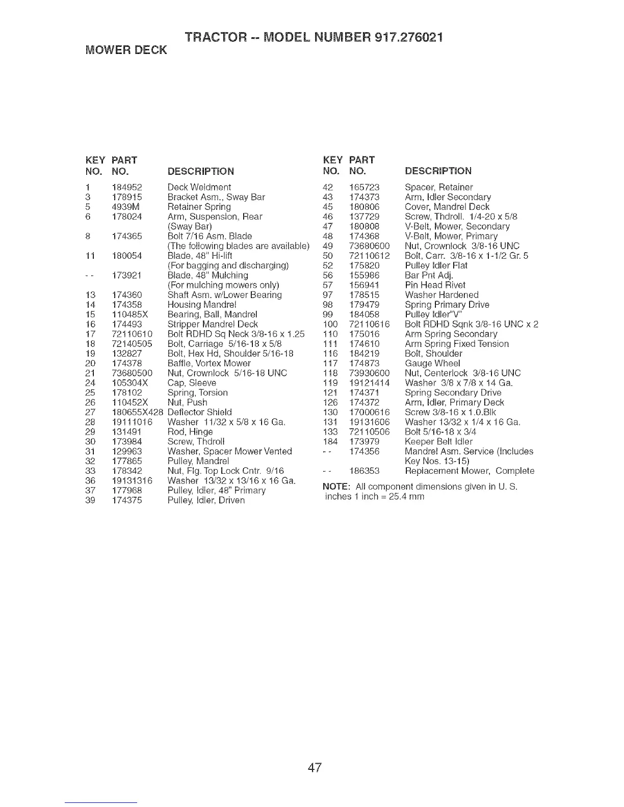 TRACTOR oo MODEL NUMBER 917.276021