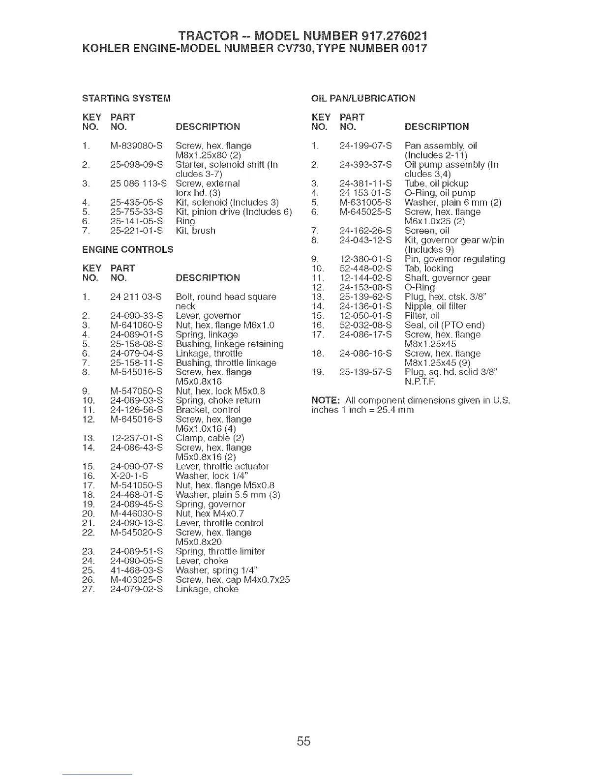 KOHLER ENGmNE-MODEL NUMBER CV730,TYPE NUMBER 0017
