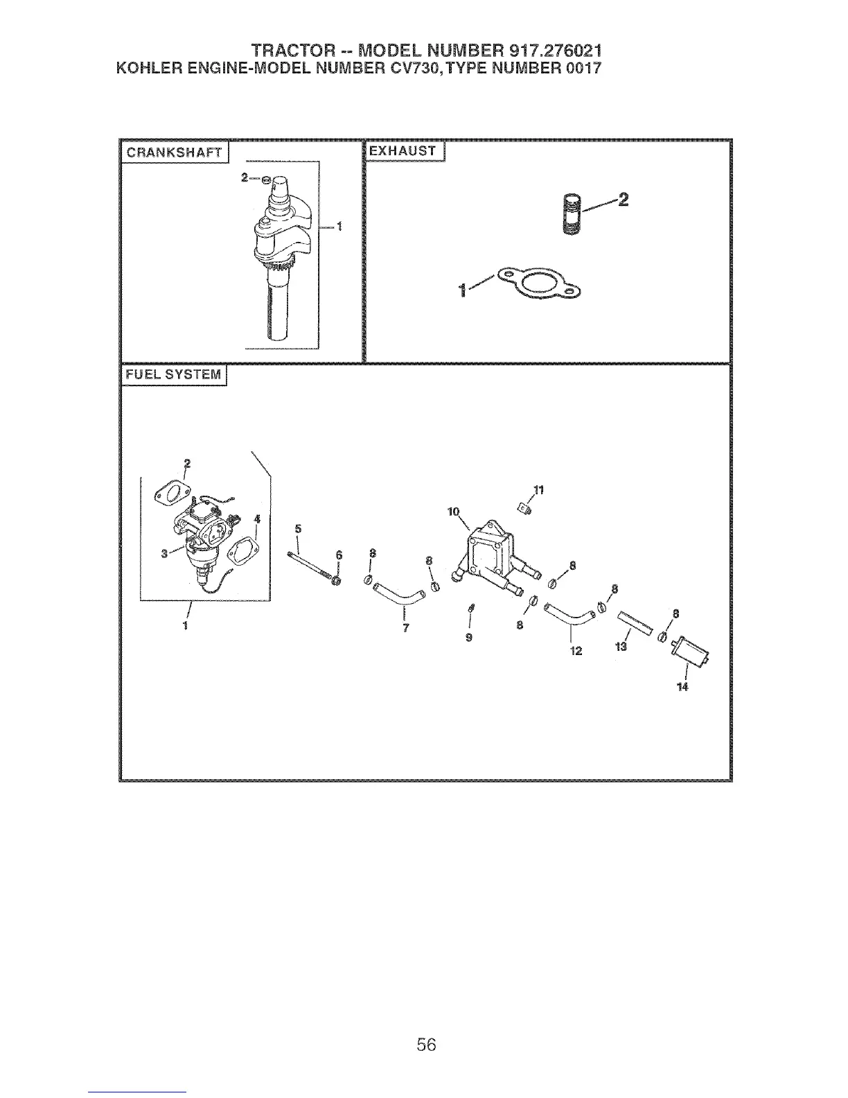 Craftsman 917.276021 - Kohler Engine - Crankshaft, Exhaust, and Fuel System; Crankshaft and Exhaust Components; Fuel System Components