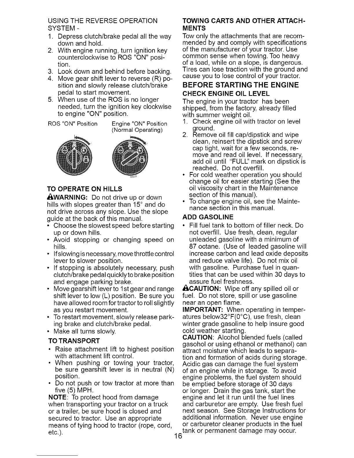 BEFORE STARTING THE ENGINE