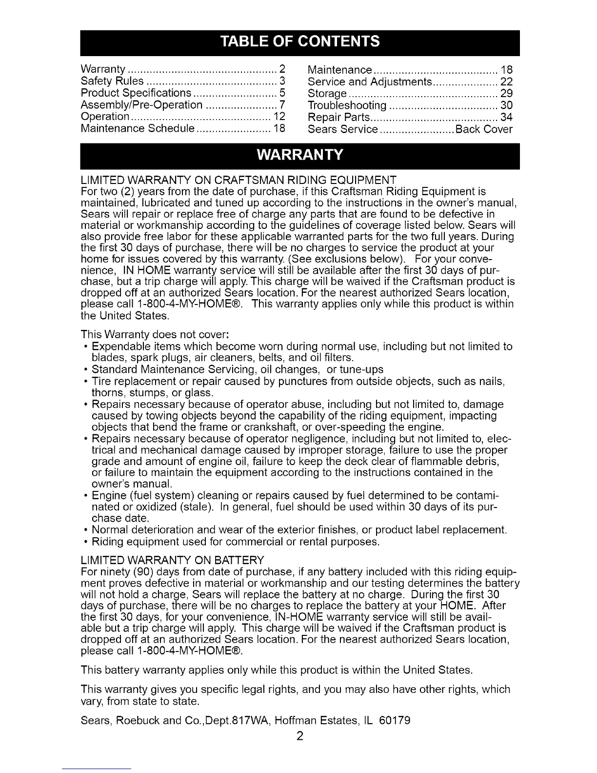 Sears Service ........................ Back Cover