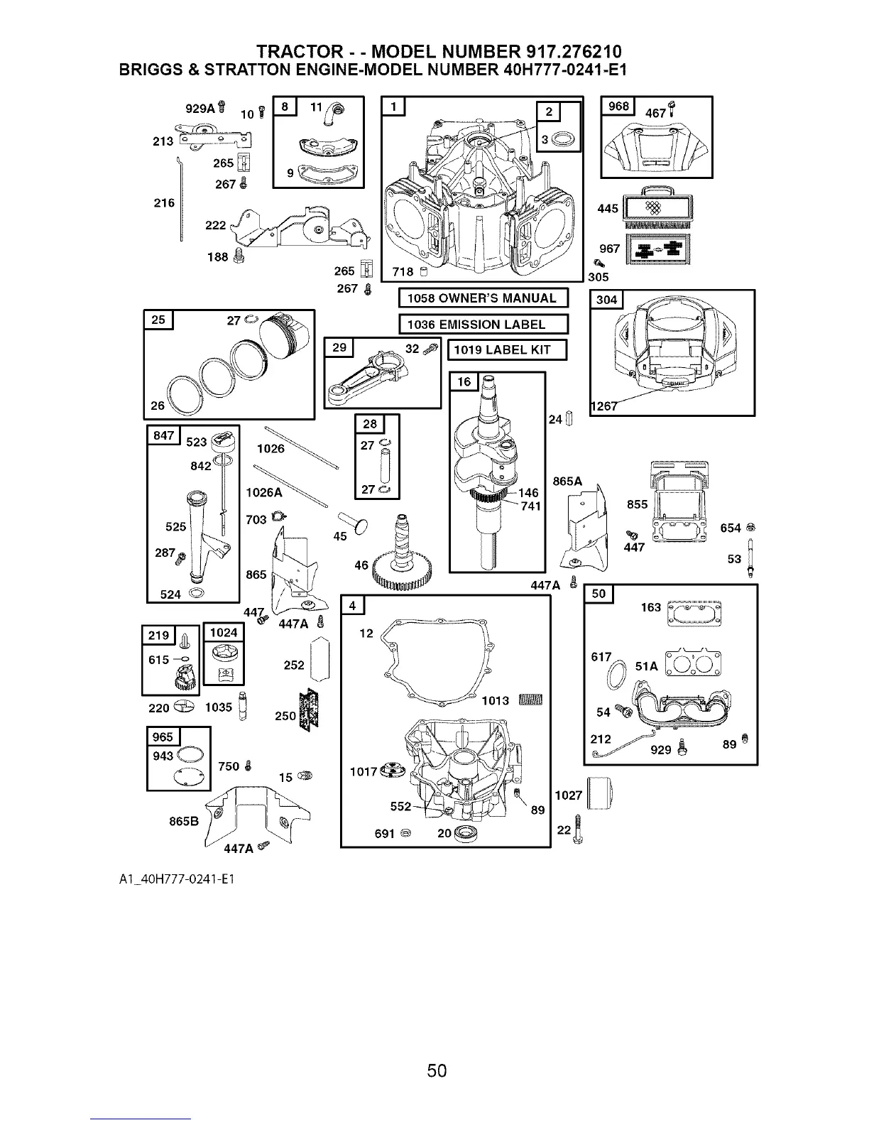 BRIGGS & STRATTON ENGINE-MODEL NUMBER 40H777-0241-E1