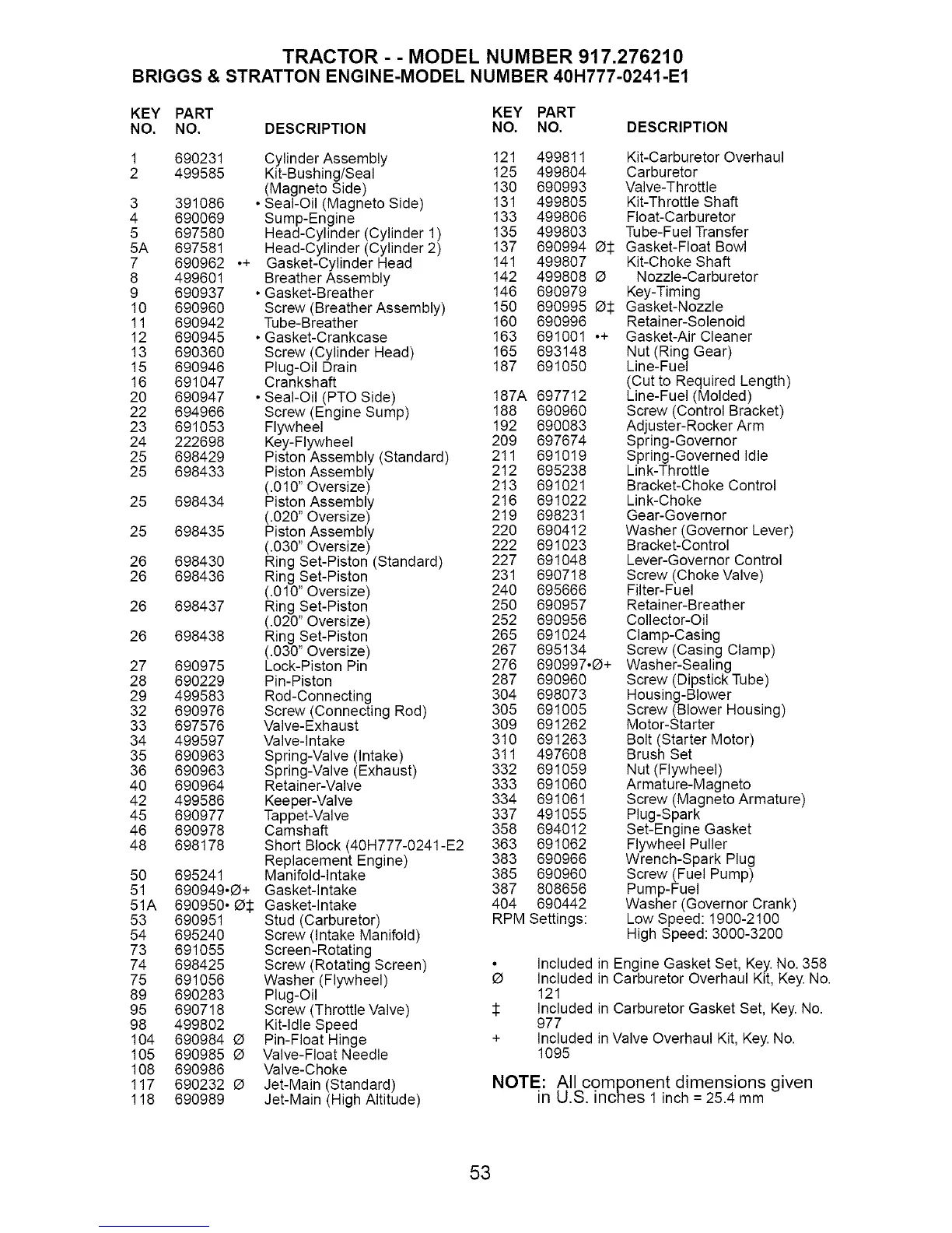 BRIGGS & STRATTON ENGINE-MODEL NUMBER 40H777-0241-E1